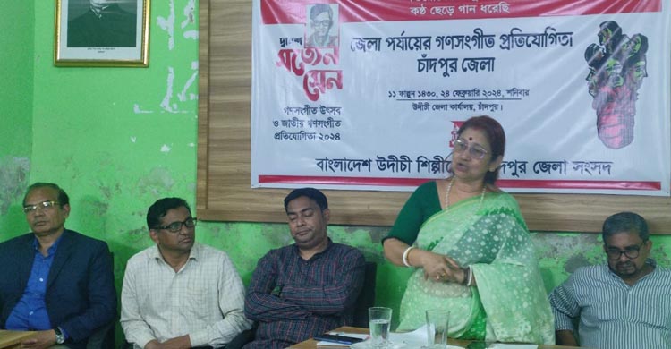 ‘কণ্ঠ ছেড়ে গান ধরেছি’ শ্লোগানকে ধারণ করে চাঁদপুর জেলা উদীচীর দ্বাদশ জাতীয় গণসংগীত উৎসব ও জাতীয় গণসংগীত প্রতিযোগিতা সম্পন্ন হয়েছে। প্রতিযোগিতার শুরুতে সংক্ষিপ্ত আলোচনা সভা ও উৎসবের উদ্বোধন করেন  সংগঠনের সভাপতি মুক্তিযুদ্ধের শব্দ সৈনিক কৃষ্ণা সাহা। সভায় প্রধান অতিথি হিসেবে উপস্থিত ছিলেন বাংলাদেশের কমিউনিস্ট পার্টি চাঁদপুর জেলা শাখার সভাপতি কমরেড জাকির হোসেন মিয়াজী।