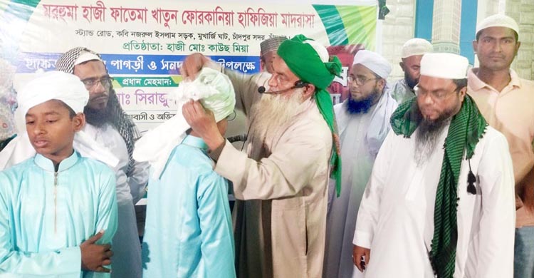 ১ মার্চ শুক্রবার বাদ এশা চাঁদপুর শহরের স্ট্র্যান্ডরোডস্থ মাদ্রাসা মসজিদে ৪৫জন ছাত্রের মধ্যে ছয়জনকে পাগড়ি প্রদান করা হয়েছে। এ উপলক্ষে বিশেষ দোয়া অনুষ্ঠিত হয়।