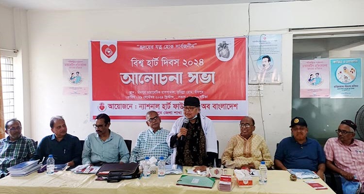 বিশ্ব হার্ট দিবসে ন্যাশনাল হার্ট ফাউন্ডেশন অব বাংলাদেশ চাঁদপুর শাখার আলোচনা সভা অনুষ্ঠিত হয়েছে। 'হৃদয়ের যত্ন সর্বজনীন' এই শ্লোগানে ২৯ সেপ্টেম্বর রোববার সকালে চাঁদপুর ডায়াবেটিক হাসপাতালে আলোচনা সভা অনুষ্ঠিত হয়। সভায় প্রধান অতিথি হিসেবে উপস্থিত ছিলেন স্বাধীনতা পদকপ্রাপ্ত বীর মুক্তিযোদ্ধা ডাঃ সৈয়দা বদরুন নাহার চৌধুরী। সংগঠনের সভাপতি ডাঃ বিশ্বনাথ পোদ্দারের সঞ্চালনায় অতিথি হিসেবে বক্তব্য রাখেন সংগঠনের উপদেষ্টা ও জেলা পূজা উদযাপন পরিষদের সভাপতি সুভাষ চন্দ্র রায়, আজীবন সদস্য কাজী শাহাদাত, বিএমএ চাঁদপুর জেলার সভাপতি ও আজীবন সদস্য ডাঃ সৈয়দ নূরুল হুদা, জেলা পূজা উদযাপন পরিষদের সাধারণ সম্পাদক তমাল কুমার ঘোষ, চাঁদপুর পৌর কমিউনিটি পুলিশিং কমিটির সভাপতি শেখ মনির হোসেন বাবুল ও বাবুরহাট হাই স্কুল এন্ড কলেজের অধ্যক্ষ মোশারেফ হোসেন।