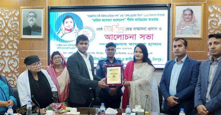 আলোচনা পর্ব শেষে জয়িতা অন্বেষণে বাংলাদেশ-২০২৩ শীর্ষক কার্যক্রম বাস্তবায়নে চাঁদপুর জেলা কমিটি কর্তৃক নির্বাচিত ৬ জন শ্রেষ্ঠ জয়িতাকে ক্রেস্ট ও সম্মাননা তুলে দেয়া হয়। তারা হলেন অর্থনৈতিকভাবে সাফল্য অর্জনকারী তানিয়া ইশতিয়াক, শিক্ষা ও চাকরি ক্ষেত্রে সাফল্য অর্জনকারী ফাতেমা আক্তার (হাজীগঞ্জ), সফল জননী রাজিয়া বেগম (হাজীগঞ্জ), নির্যাতনের বিভীষিকা মুছে ফেলে নতুন উদ্যমে জীবন শুরু করা কানিজ ফাতেমা (ফরিদগঞ্জ), সমাজ উন্নয়নে অসামান্য অবদান রাখা নাজমা আলম (চাঁদপুর সদর) ও অর্থনৈতিকভাবে উপজেলা পর্যায়ে সাফল্য অর্জনকারী জেসমিন আক্তার।