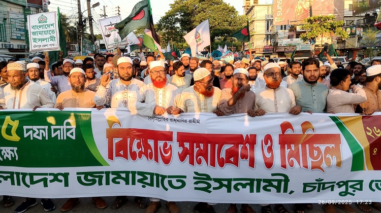 চাঁদপুর জেলা জামায়াতে ইসলামীর উদ্যোগে বিক্ষোভ সমাবেশ ও মিছিল