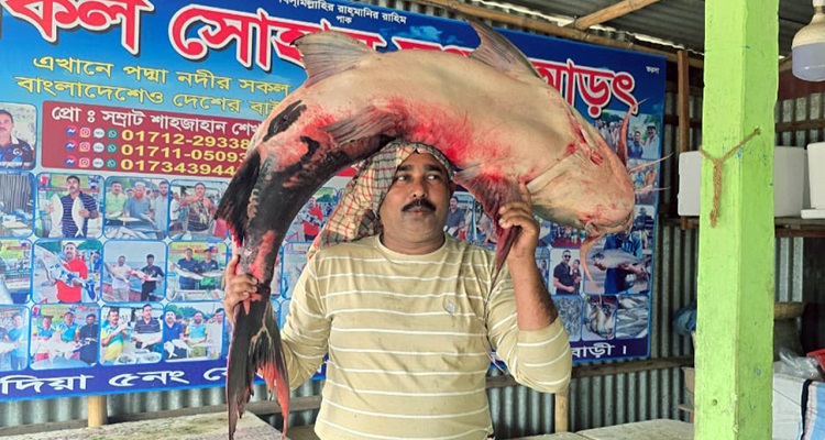 পদ্মায় ধরা পড়লো ৪২ কেজির বাঘা আইড় মাছ